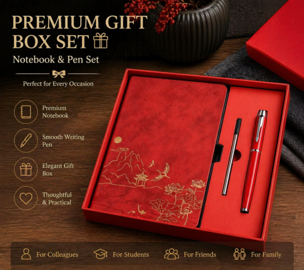 Make a lasting impression with this luxury red notebook and pen gift set, beautifully presented in an elegant gift box. Designed for both style and practicality, this premium set is perfect for professionals, students, and anyone who appreciates refined stationery.