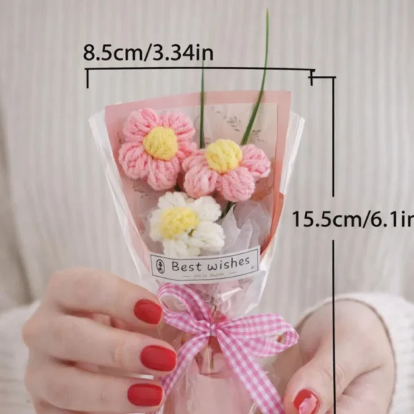 Add a touch of sweetness and charm with this mini artificial flower bouquet. Featuring beautifully crafted crochet-style flowers wrapped in a cute decorative bouquet, this small arrangement is perfect for gifting or decorating small spaces.