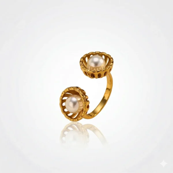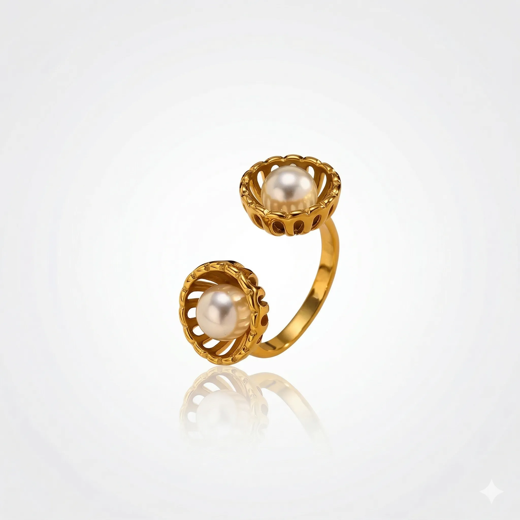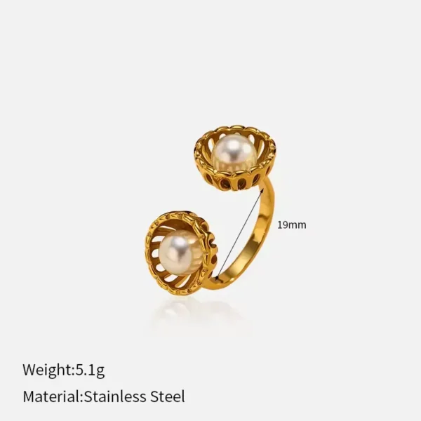 Waterproof Gold Flower Ring – Adjustable Pearl Design