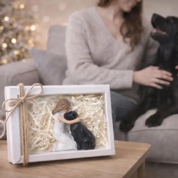 Celebrate the special bond between a woman and her dog with this beautifully designed ornament. Capturing a heartfelt moment of love and connection, this piece symbolises loyalty, companionship, and lasting memories.